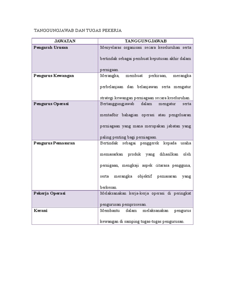 Tanggungjawab Dan Tugas Pekerja