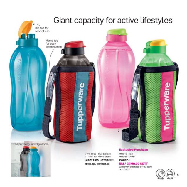 Tupperware Giant Eco Bottle Bottles 2 2 0l 2l With Pouch 1 Free Handle Shopee Singapore
